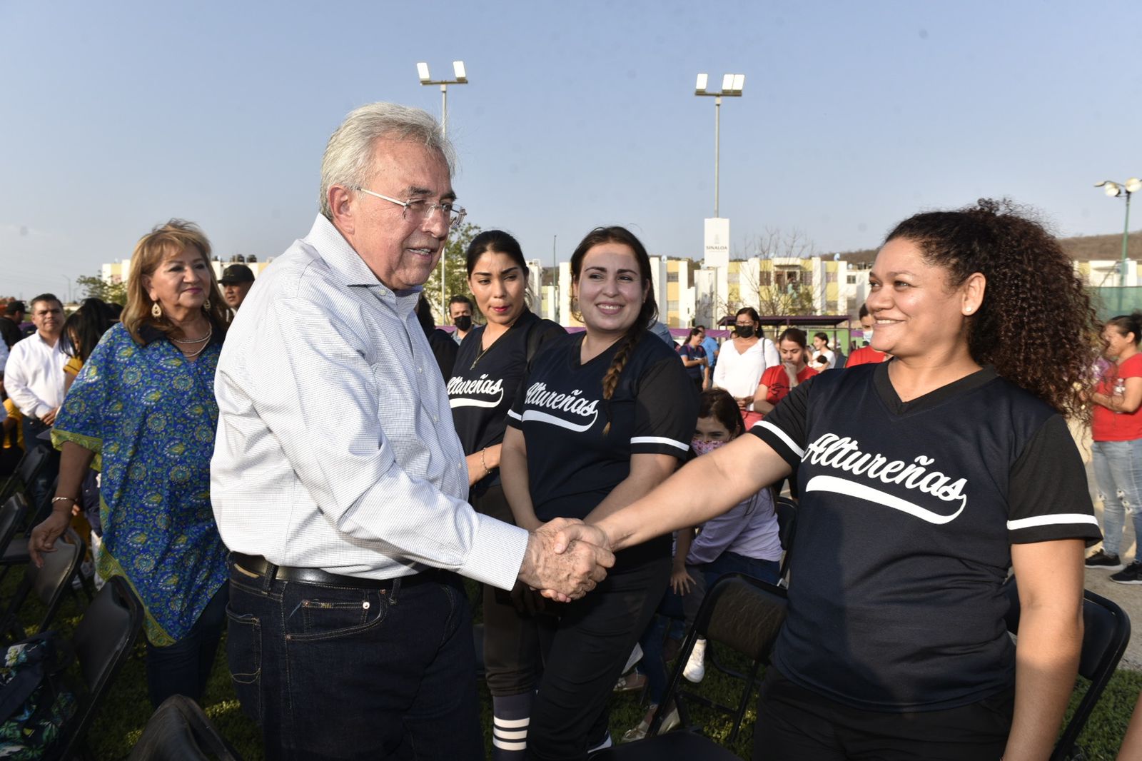Culiacán, Sinaloa, a 02 de junio de 2022.- En atención a un compromiso realizado el pasado 08 de marzo, el Gobernador Rubén Rocha Moya inauguró un campo de softbol femenil en la colonia Alturas del Sur, acompañado de María Teresa Guerra Ochoa, titular de la Secretaría de las Mujeres, David Vargas Rodríguez, Presidente del Consejo Directivo del PIDS, José Luis Zavala, Secretario de Obras Públicas y Cristóbal Castañeda Camarillo, Secretario de Seguridad Pública Estatal.