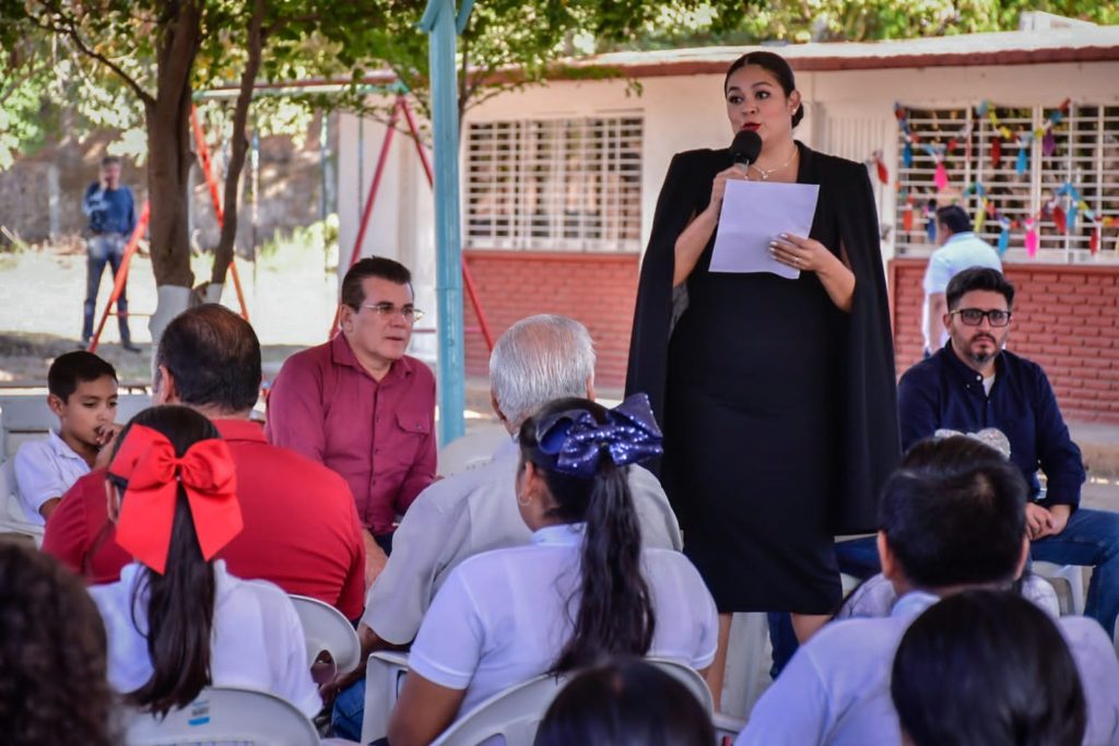 La directora del plantel, Fernanda Alemán León, dio la bienvenida al Alcalde, además agradeció por esta obra que sumará al aprendizaje de los alumnos.