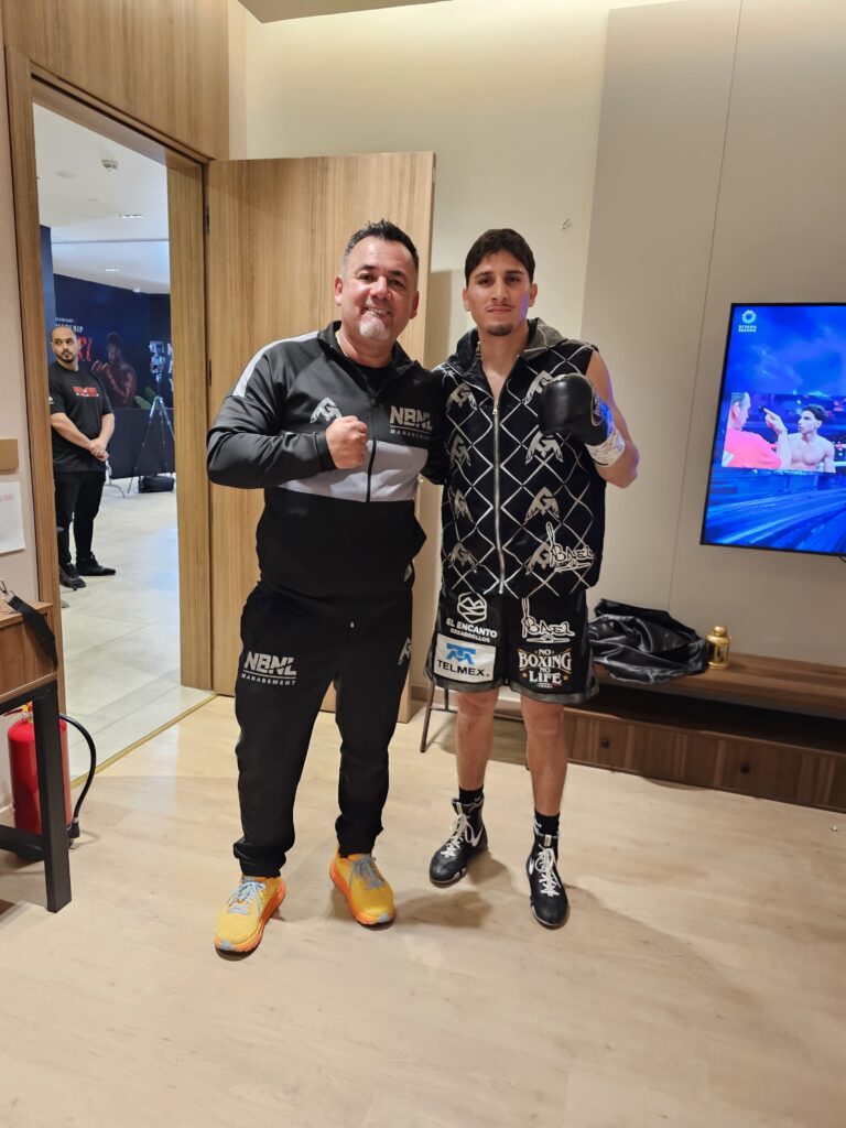 Cabe mencionar que el pugilista oriundo de Mazatlán, Sinaloa; estuvo acompañado en todo momento de su preparador físico y entrenador en el Gimnasio de Boxeo «José Sulaimán», Radamés Hernández Cázares.