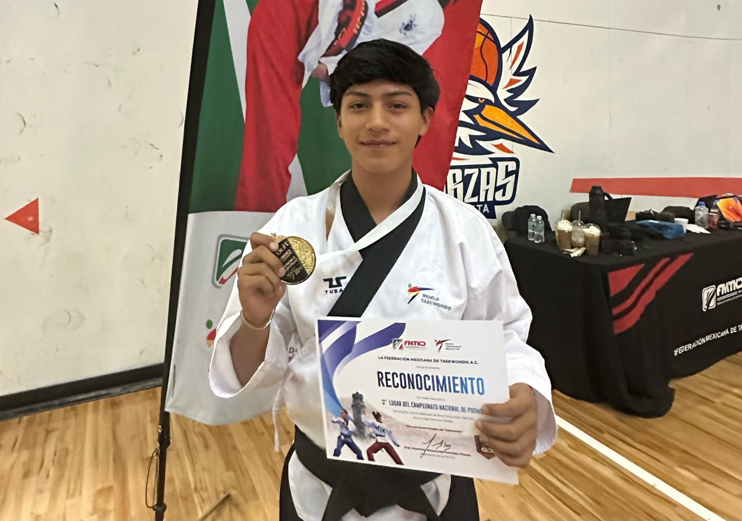 Pachuca, Hidalgo.- La consistencia mostrada por el mazatleco, Nery Alexander Frías Mozo, sigue dando frutos a grandes niveles, tras lograr el tercer lugar en el Campeonato Nacional de Poomsae, celebrado en el Polideportivo Carlos Martínez Balmori Ciudad del Conocimiento.