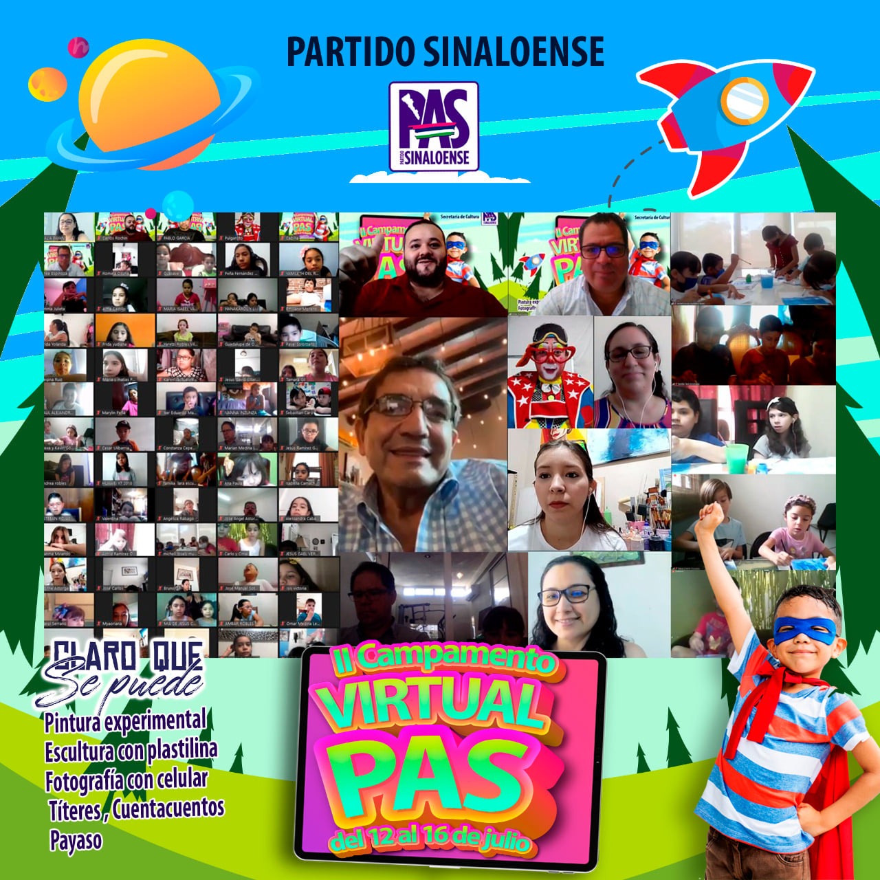 Culiacán Sinaloa, a 12 de julio del 2021.- Inaugura el presidente del Partido Sinaloense, Héctor Melesio Cuén Ojeda, el Segundo Campamento Virtual de Verano para Niñas y Niños, el cual se impartirá toda la semana por maestros miembros del PAS, más que clases serán platicas virtuales entre más de 213 niñas y niños que estuvieron conectados durante este primer día, pero se espera que se incremente durante la semana, estuvieron acompañando a Cuén Ojeda la diputada Angélica Díaz Quiñonez y el Dr. Víctor Antonio Corrales Burgueño.