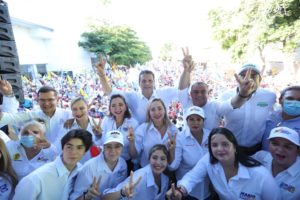 El candidato a gobernador está frente a los suyos y con los suyos, su esposa Wendy, sus hijas, su familia, dirigentes de los partidos políticos que lo abanderan, líderes sociales, las y los ahomenses, todos están aquí. Está en su tierra. Y son tantos y tantas los que han venido desde diferentes comunidades y colonias populares.
