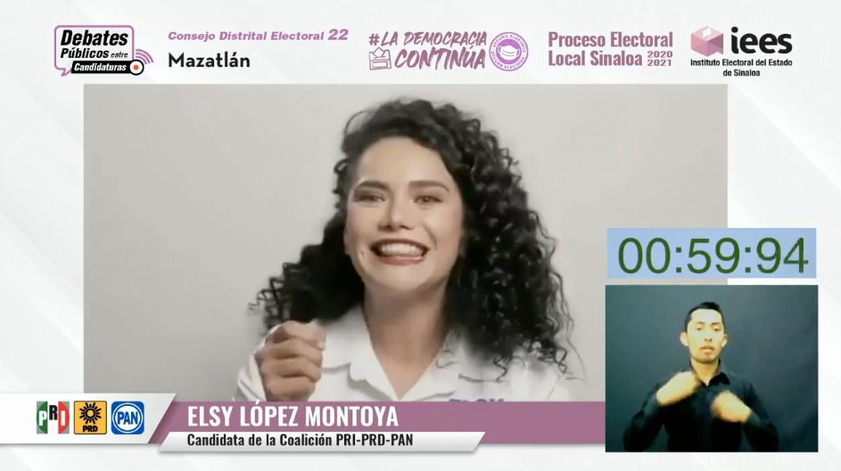 Con planteamientos objetivos y enfocados en impulsar el bienestar de los mazatlecos, Elsy López Montoya presentó las mejores propuestas durante el primer debate entre candidatas y candidatos a la diputación local por el Distrito 22, ejercicio organizado por el Instituto Electoral del Estado de Sinaloa (IEES).