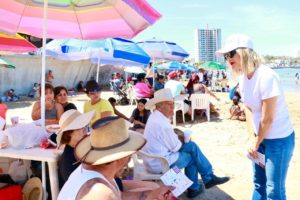 La funcionaria estatal recorrió este Sábado de Gloria, las playas y el Malecón de esta ciudad para saludar e interactuar con turistas que disfrutan del periodo vacacional de Semana Santa.