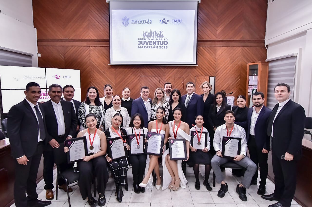 En Sesión Solemne de Cabildo, el Ayuntamiento de Mazatlán y regidores entregaron este martes el Premio al Mérito de la Juventud 2023 a un joven deportista y seis estudiantes mazatlecas, que consistió en diplomas, medallas y premios económicos.