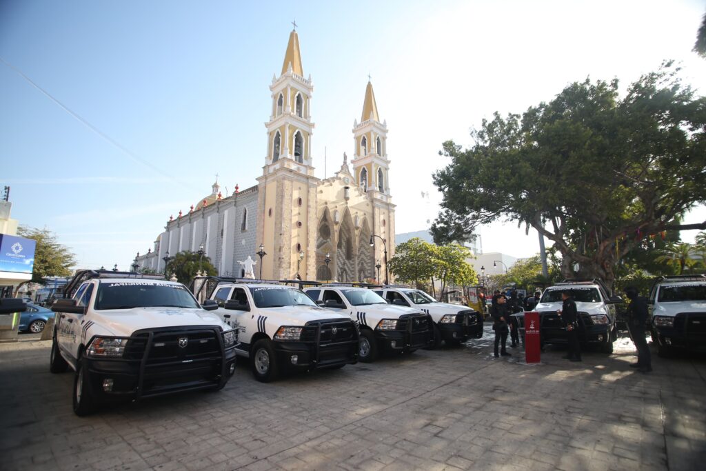 La Presidenta de Mazatlán, Estrella Palacios Domínguez, hizo entrega de las unidades al Secretario de Seguridad Pública, Jaime Othoniel Barrón Valdez, en presencia de miembros del Cabildo, funcionarios del Ayuntamiento y agentes policiacos, en la explanada de la Plazuela República.