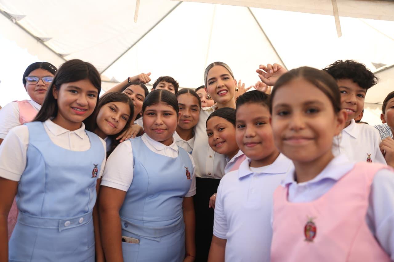 La Directora de la institución educativa, Karina Guadalupe Palomera Beltrán, destacó que hoy es un día de gran trascendencia para la comunidad escolar, porque celebraron la entrega de la cancha de usos múltiples, obra que será punto de encuentro, convivencia y desarrollo integral para los estudiantes.