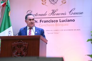 “Está Universidad es una digna universidad del estado de Sinaloa, está comprometida con el gran cambio, la gran transformación de Sinaloa y de nuestro país; recibir este doctorado Honoris Causa no es solo un reconocimiento a una trayectoria personal sino un homenaje a la memoria colectiva que se han construido; la Universidad Autónoma de Sinaloa ha sido y sigue siendo referente fundamental en este camino, lo que refleja su capacidad para mantenerse fiel a su misión social sin rehuir los debates ni las transformaciones profundas; agradezco profundamente este alto honor que acepto con humildad”, puntualizó.