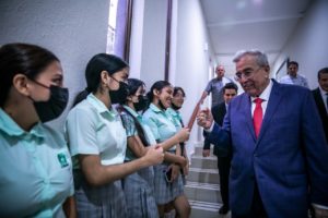 Culiacán, Sinaloa, a 30 de septiembre de 2022.- Al participar en la sesión solemne del Congreso del Estado para la entrega del Premio al Mérito Juvenil 2022, el gobernador Rubén Rocha Moya precisó que es necesario pensar en los jóvenes, y que el apoyo a este sector no sea sólo retórica, sino acciones de gobierno para ayudarlos a desarrollarse en cualquiera de las disciplinas y ámbitos que hayan elegido seguir en la vida.