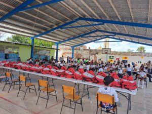Reséndiz Memije informó que las 220 niñas y niños beneficiados pertenecen a los poblados de La Noria, San Marcos, La Puerta de San Marcos, Veranos, Juantillos, Las Chicuras y El Tecoyonqui