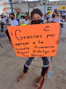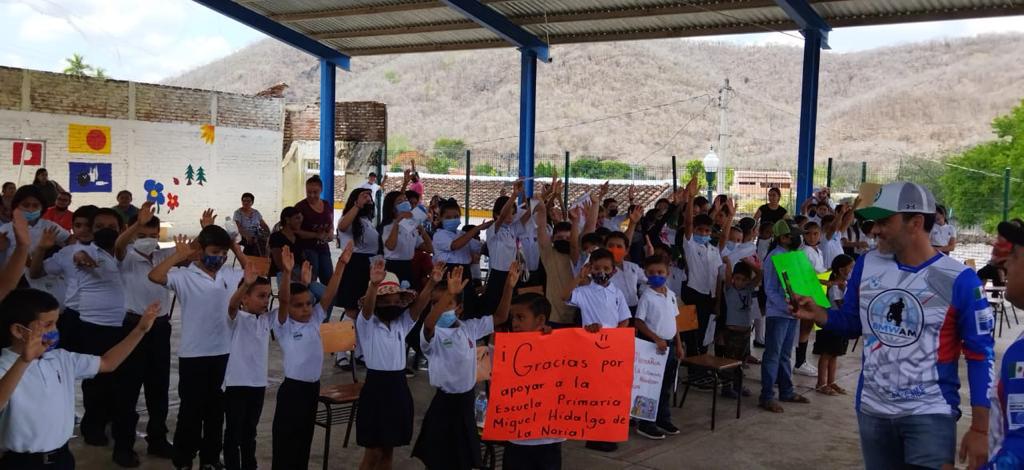 “Gracias por apoyar a la escuela primaria Miguel Hidalgo de La Noria” “Puerta de San Marcos les da las gracias por su gran apoyo” “Escuela primaria Emiliano Zapata de la comunidad Las Chicuras de La Noria agradece su apoyo a la educación”, se leyó en carteles y hermosos dibujos de motocicletas con brillantes colores, fueron algunas de las muestras de agradecimiento con las que las niñas y niños recibieron a los motociclistas.