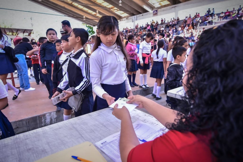 En total se entregó un millón de pesos en apoyos económicos a estudiantes de primaria de la zona urbana y rural, correspondientes al bimestre de noviembre y diciembre, por lo que cada niña y niño recibió 400 pesos en efectivo.