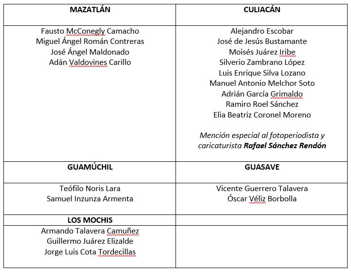 En esta significativa ceremonia se reconoce y honra la trayectoria de los reporteros gráficos más de 30, 40 o 50 años de ejercer la profesión hasta nuestros días, que les ha permitido ser testigos y relatores entre imágenes, del devenir cotidiano de Sinaloa.