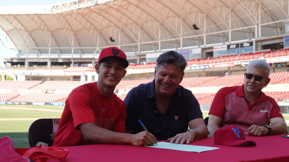 También estuvo acompañado por sus compañeros de la Academia de Beisbol Venados y sus padres.