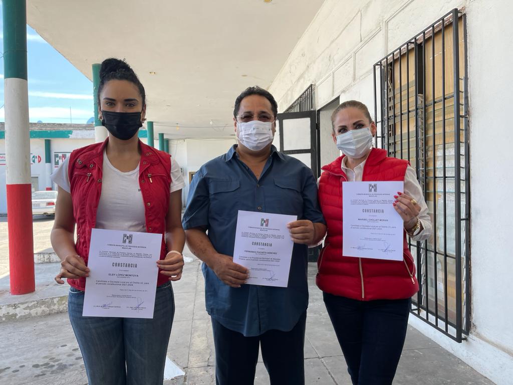 Al igual, Elsy López Montoya y Maribel Chollet, candidatas al 22 y 23 distrito electoral, respectivamente, recibieron su constancia.