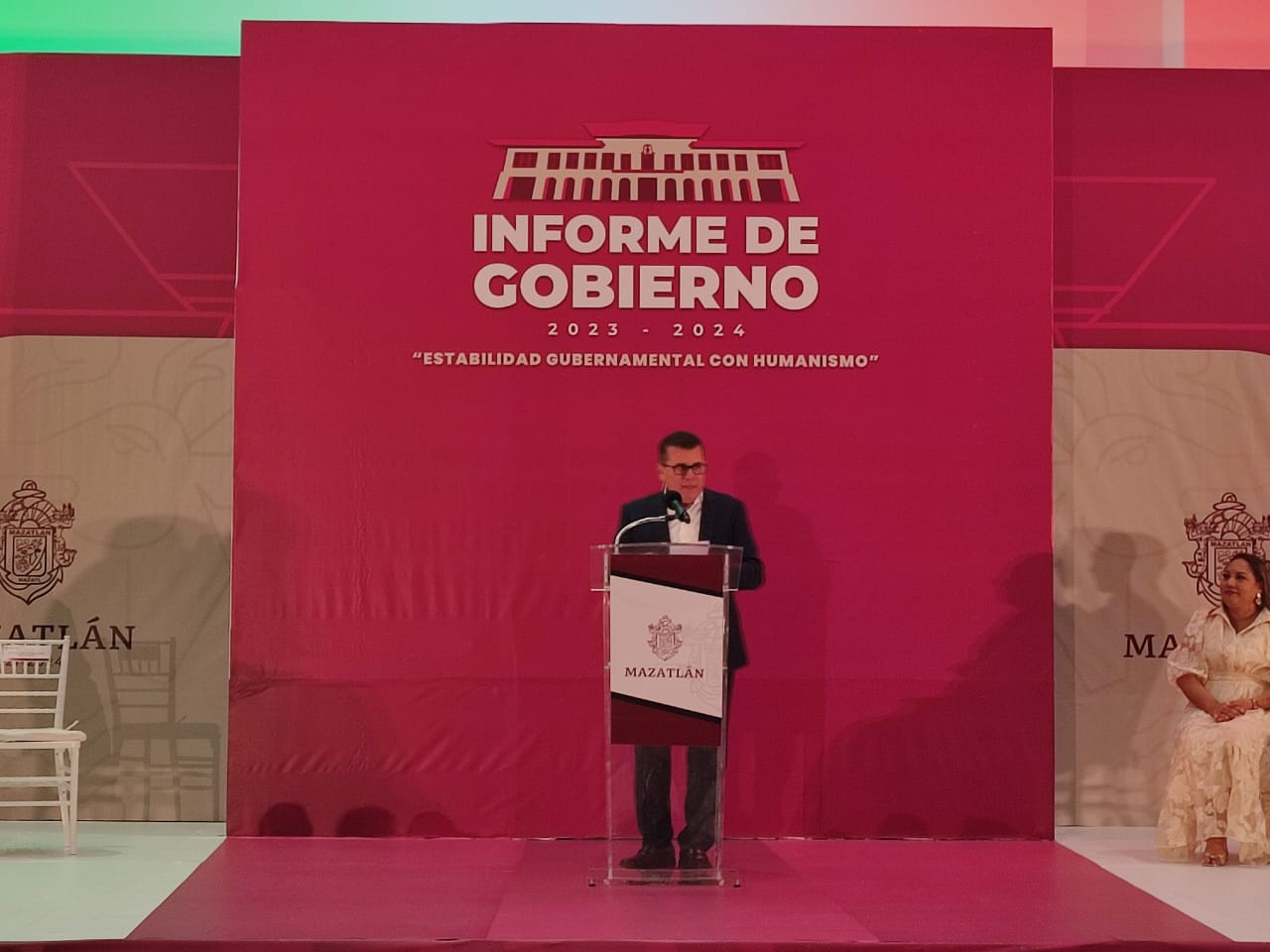 Mazatlán, Sinaloa.- El alcalde de Mazatlán, Édgar Augusto González Zatarain, rindió de manera pública su Informe de Gobierno 2023-2024, siendo este su último acto de presencia para anunciar las acciones que realizó durante dos años en el puerto.