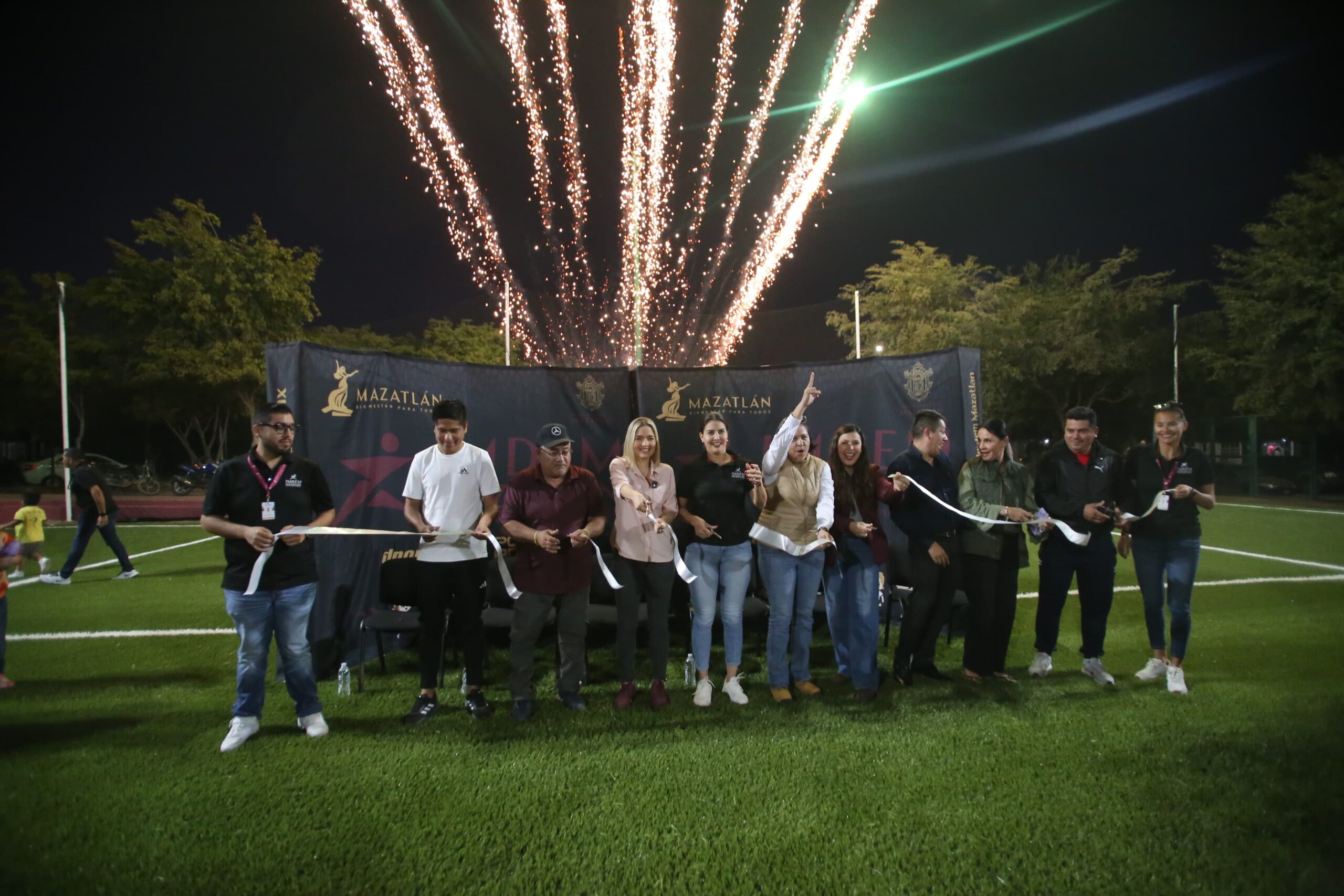 Mazatlán, Sinaloa.- La Presidenta, Estrella Palacios, titular del Gobierno de Mazatlán, cumplió su palabra y entregó un compromiso más en los primeros 100 días de su administración: la rehabilitación integral de la Unidad Deportiva Pradera Dorada II.