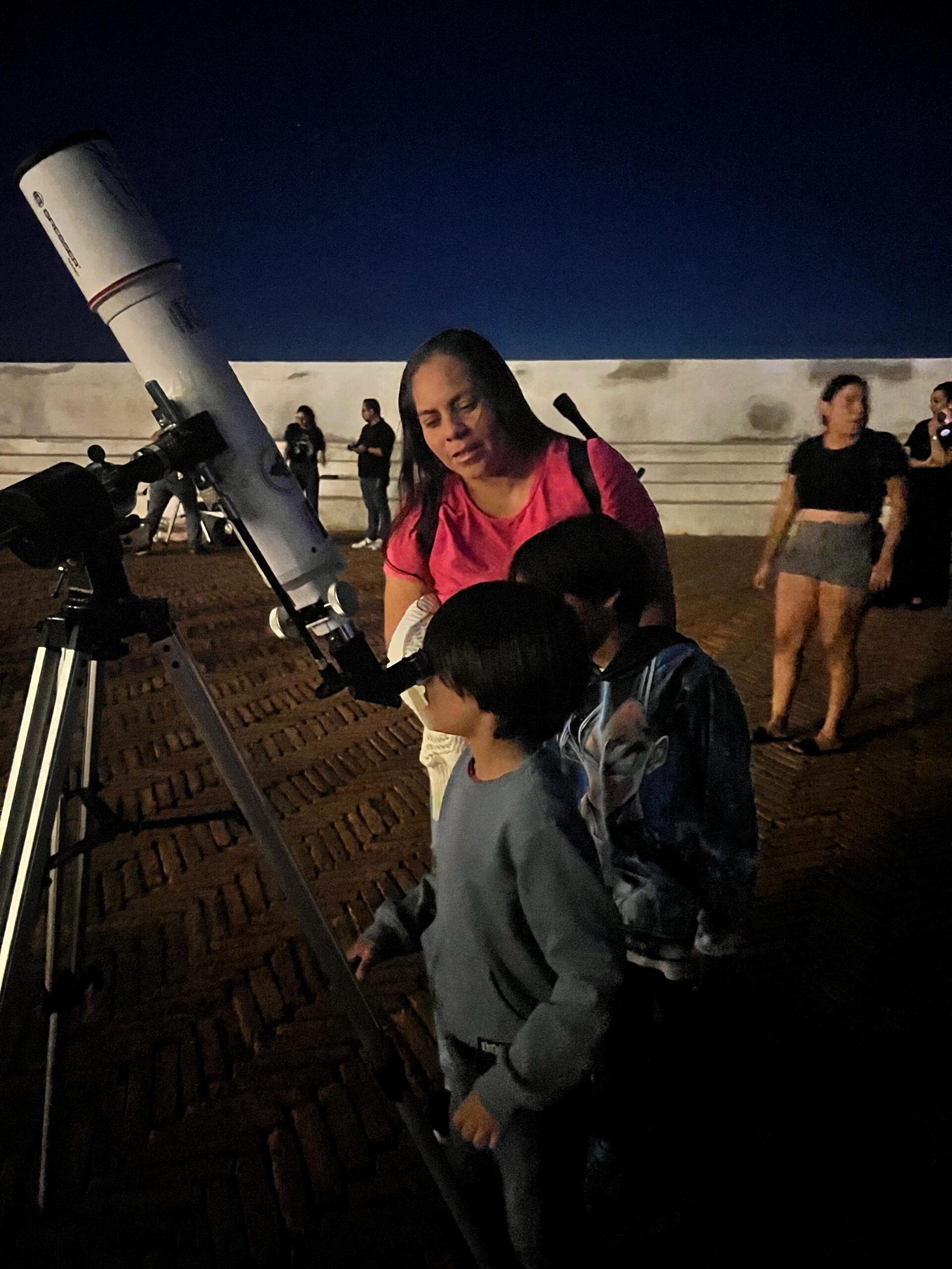 El Fuerte 31 de Marzo se consolidó como el lugar ideal para la observación, gracias a su oscuridad y cercanía al mar, que minimizan la contaminación lumínica. Cientos de asistentes, especialmente niños, hicieron fila para mirar a través de los telescopios operados por los voluntarios de la SAMAZ.