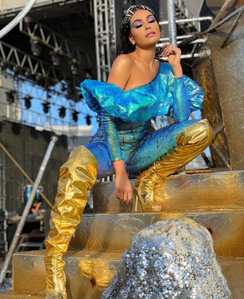 Jenny García: La bailarina dejó ver su espectacular silueta en un traje color dorado. Por más de 10 años formó parte del ballet del programa de TV Azteca Venga la Alegría.