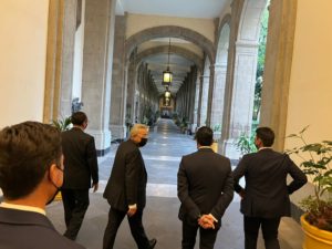 *Culiacán, Sinaloa, a 27 de julio de 2022.-* En sintonía con los esfuerzos del Gobierno Federal para posicionar a México como una potencia turística competitiva, incrementar la atracción de inversiones, diversificar la inversión industrial y ampliar la infraestructura turística e hidroagrícola, el Gobernador Rubén Rocha Moya y una comitiva de 25 empresarios sinaloenses, sostuvieron la noche de este miércoles una cena en Palacio Nacional con el Presidente López Obrador, a la que acudieron líderes empresariales nacionales como Francisco Cervantes, Presidente del Consejo Coordinador Empresarial, Carlos Slim Domit (Grupo Carso), Vicente Yañez (Antad), Carlos Bremer (Value Group), Daniel Chávez Moran (Grupo Vidanta), entre otros.