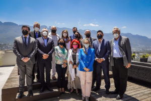 Monterrey, Nuevo León, viernes 20 de agosto de 2021. Con el propósito de unir esfuerzos que promuevan la actividad económica a través de fortalecer el ámbito local −particularmente a las Mipymes−, así como el impulso a la capacitación digital de las mujeres y, de las acciones integrales de la Agenda 2030 para el Desarrollo Sostenible, las y los gobernadores electos del país se reunieron con la secretaria de Economía, Tatiana Clouthier Carrillo.