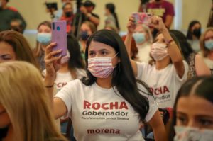 El candidato de la alianza Morena-PAS a la gubernatura, Rubén Rocha Moya afirmó ante ingenieras, arquitectas, médicas, enfermeras, abogadas, doctoras y máster en Ciencias, maestras normalistas, biólogas, contadoras, entre otras profesiones, así como gobernadoras indígenas, que gobernará Sinaloa con las mujeres en circunstancias de equidad de género sustantiva, a la vez que contribuirá a establecer las condiciones para que se desarrollen plenamente protegidas de la violencia.