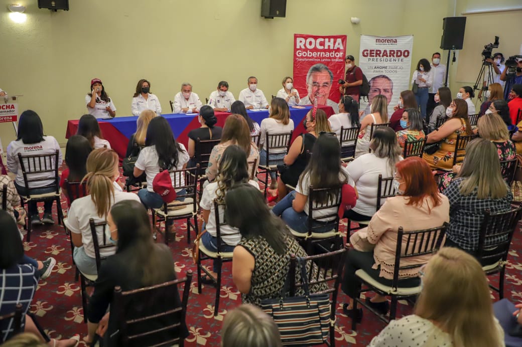 El candidato de la alianza Morena-PAS a la gubernatura, Rubén Rocha Moya afirmó ante ingenieras, arquitectas, médicas, enfermeras, abogadas, doctoras y máster en Ciencias, maestras normalistas, biólogas, contadoras, entre otras profesiones, así como gobernadoras indígenas, que gobernará Sinaloa con las mujeres en circunstancias de equidad de género sustantiva, a la vez que contribuirá a establecer las condiciones para que se desarrollen plenamente protegidas de la violencia.