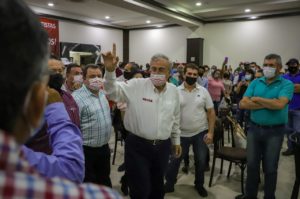 El abanderado de Morena y el PAS aseguró que encabezará un gobierno honesto y transparente, en el que se erradicará la corrupción, y en su caso, así como llegue a la gubernatura va salir, ya que vive y seguirá viviendo de sus pensiones.