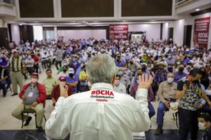 Rubén Rocha Moya estuvo acompañado en el foro por el presidente estatal del PAS, Héctor Melesio Cuén Ojeda; el delegado del Comité Ejecutivo Nacional de Morena en Sinaloa, Américo Villarreal Anaya; los trasportistas Miguel Loaiza Pérez, Pablo Bedolla Bañuelos y Rubén Medina; el ídolo del box y también transportista, Humberto “La Zorrita” Soto; y el candidato a la diputación local por Distrito 14, Jesús Ibarra.