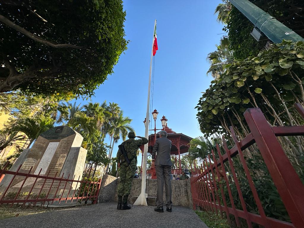 Durante la ceremonia las autoridades municipales, militares, navales, escolares e invitados rindieron honores a la enseña nacional, entonaron el Himno y el alumno Rodolfo Zarain Peñuelas de la Escuela Primaria «Constitución 1917» presentó la reseña histórica de este importante acontecimiento para los mexicanos.
