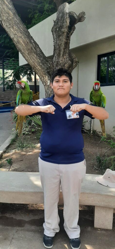 «Nosotros hemos recibido a estudiantes de los CAM, trabajaron 2 jovencitas Fátima y Angie quienes en el tiempo que han trabajado aquí con nosotros, han fungido junto con nuestro equipo, de anfitriones, en la atención al público, ellos, ellas suelen dar la bienvenida y orientar a los visitantes, apoyan el acomodo de los exploradores en las exhibiciones, también apoyan en algunas interacciones, y bueno, hemos notado que en este trabajo en conjunto ellas practican el lenguaje, fortalecen su habilidad de comunicación y de sociabilidad y sí se ha notado un cambio importante, de cuando llegaron y lo que han logrado hasta ahorita, y bueno el tercer caso es el de Cristian, un chico que nos sorprendió a todos, él comenzó trabajando en la zona del aviario, Casa Guacamaya, hablaba muy poquito cuando llegó, y nos gustó mucho que Kevin uno de los anfitriones, que lo acompañaba en ese lugar, trabajó poco a poco con él, desarrolló su confianza para trabajar con él y le explicó cómo se trabajaba y ahora Cristian, bueno, orienta a los exploradores, apoya en las interacciones, ya no está solo en aviario, está en muchos otros sitios apoyando, estamos muy contentos de ver cómo ha evolucionado y cómo ha crecido».