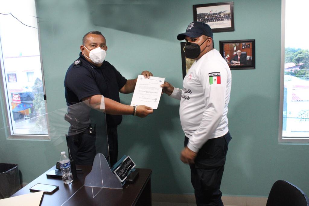 El Secretario de Seguridad Pública y Tránsito Municipal, Comisario Juan Ramón Alfaro Gaxiola entregó nombramiento como Comandante del Escuadrón de Salvamento Acuático al Policía Operativo Gustavo Espinoza Bastidas, quien es paramédico certificado.