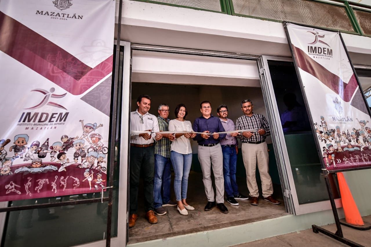 Para inaugurar oficialmente las nuevas oficinas del Instituto Municipal del Deporte, Edgar González, Presidente Municipal de Mazatlán, realizó un recorrido por las nuevas áreas y realizó el corte de listón.