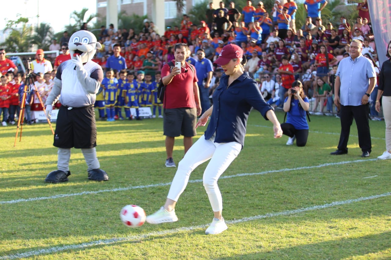 Mazatlán, Sinaloa…La Presidenta de Mazatlán, Estrella Palacios Domínguez, fue la encargada de inaugurar el Torneo Nacional de Futbol, categoría Chupones, donde ocho estados de la República lucharán por ser los mejores de todo México.