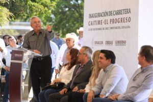 De esta manera, el gobernador Rocha regresó a El Progreso, también conocido como El Jalón, ahora en compañía de su hija, Eneyda Rocha Ruiz, presidenta del Sistema DIF Sinaloa, para recoger su palabra empeñada durante su anterior visita, cuando hace meses se comprometió a construir esta carretera, de poco más de 10 kilómetros de longitud, en la que se invirtieron 81.5 millones de pesos y que comunica directamente con la carretera Internacional México 15, donde se encuentra Caitime, perteneciente al municipio de Salvador Alvarado.