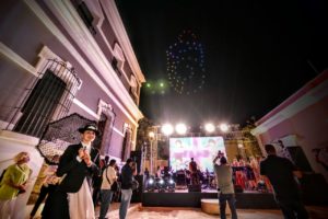 Para cerrar con broche de oro, un grupo de drones iluminó el cielo frente al imponente Océano Pacífico dándole majestuosidad a esta obra, que, sin duda alguna, se llevará el mejor de los recuerdos de quienes la visiten. Simultáneamente en la Plazuela de los Leones dentro de este marco se exhibió el libro «Sin alas vuela», de Guadalupe Rojas además de la participación del grupo Blanconero quienes pusieron el toque de romanticismo a la noche.