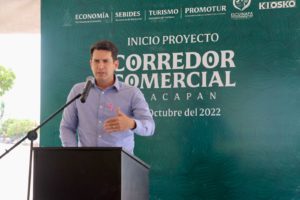 Teacapán, Escuinapa Sinaloa, 19 octubre 2022.- Con la finalidad de impulsar el turismo y detonar la economía, a través de la generación de empleos, el fortalecimiento del sector comercial y el embellecimiento del destino, las Secretarías de Economía, Turismo y Bienestar y Desarrollo Sustentable, así como Promotur, pusieron en marcha el inicio del proyecto del Corredor Comercial en Teacapán.