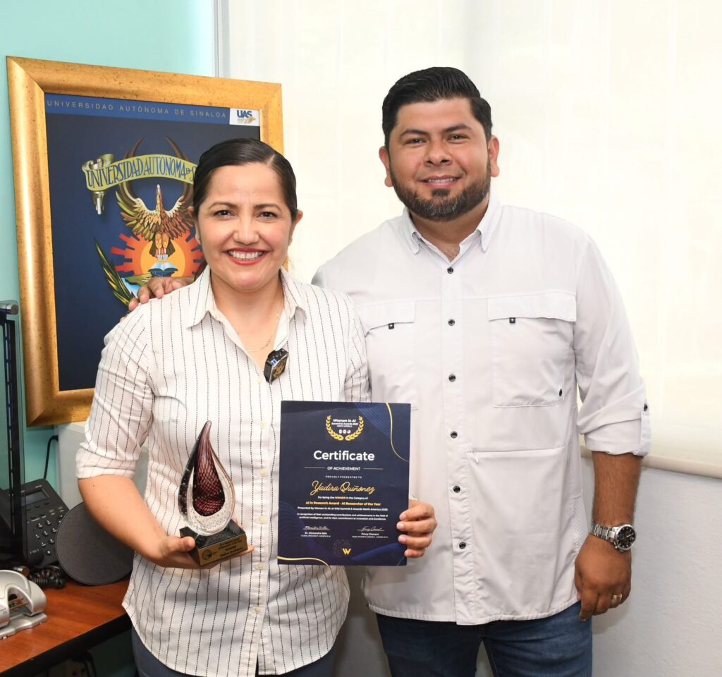 “Estoy muy emocionada, muy satisfecha con este resultado pues me están haciendo un reconocimiento como investigadora del año en inteligencia artificial; creo que es un premio colectivo porque esto lo que está haciendo es garantizando la calidad educativa que tenemos aquí en la UAS y lo que hace es constatar que estamos generando conocimiento a nivel global, a nivel internacional y estamos siendo reconocidos”.