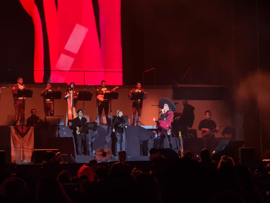 Para deleitar a la soberana y a los mazatlecos, Edith Marquez ofreció un concierto en el que puso a cantar al público con sus canciones de amor y desamor acompañadas de un mariachi.