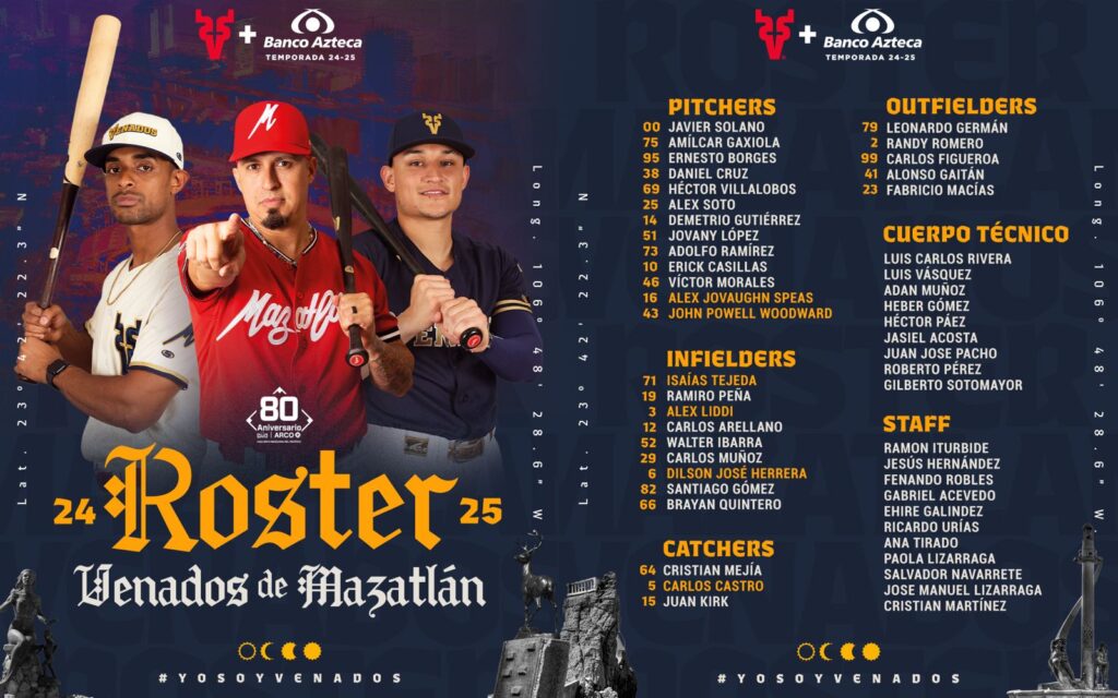 Venados de Mazatlán anunció su roster de cara al inicio de la temporada, este sábado 12 de octubre en Jalisco y el domingo 13 de octubre, en el Estadio Teodoro Mariscal. La apertura de puertas será a las 16:00 horas, la ceremonia inaugural a partir de las 18:00 horas.