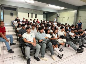 Mazatlán, Sinaloa.– Poco más de 300 jóvenes estudiantes del Colegio de Bachilleres del Estado de Sinaloa plantel #38 “Lic. Marco Antonio Arroyo Camberos” asistieron entre martes y miércoles a la conferencia “Agua y desarrollo sostenible”, ofrecida por el Gobierno Municipal, que dirige la Presidenta Estrella Palacios Domínguez, a través del Departamento de Cultura del Agua de Jumapam.
