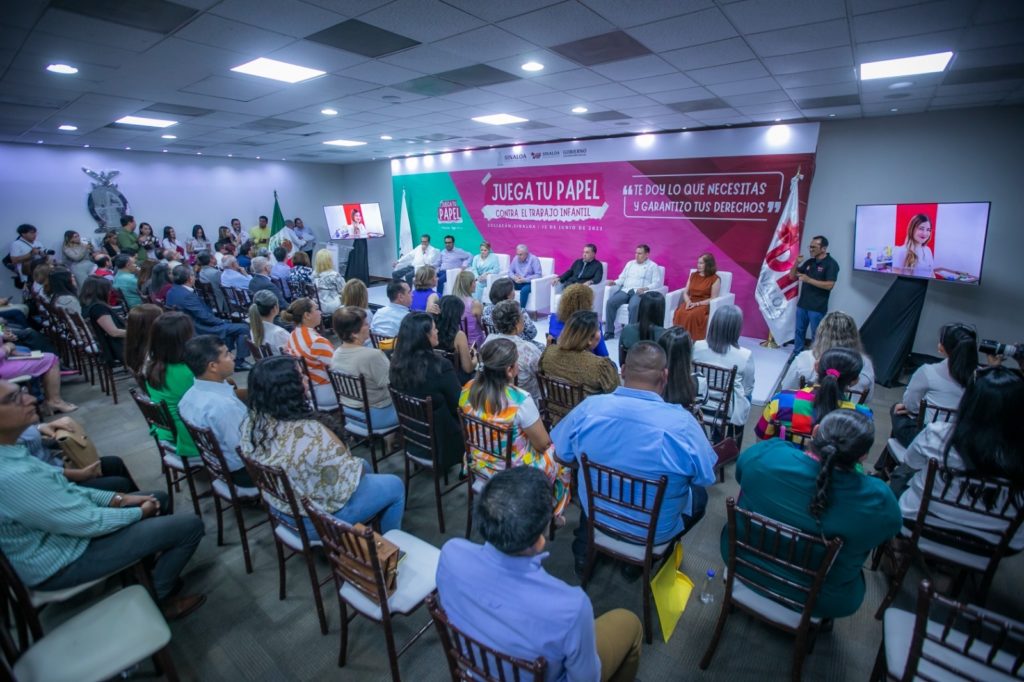Culiacán, Sinaloa, a 12 de junio de 2023.- En el marco del Día Mundial de la Lucha Contra el Trabajo Infantil y como parte de las estrategias estatales para combatirlo, este lunes el Gobernador Rubén Rocha Moya encabezó el arranque de la campaña «Juega tu papel contra el maltrato infantil», instrumentada por el Sistema DIF Sinaloa que preside Eneyda Rocha Ruiz, en coordinación con el Sistema DIF Nacional, la cual, bajo la premisa de «Te doy lo que necesitas y respeto tus derechos», tiene por objetivo identificar la necesidad específica de los menores trabajadores y sus familias, para ayudar a resolver la situación de origen que impulsa esta acción, atendiéndola de manera transversal, en pleno respeto de sus derechos.