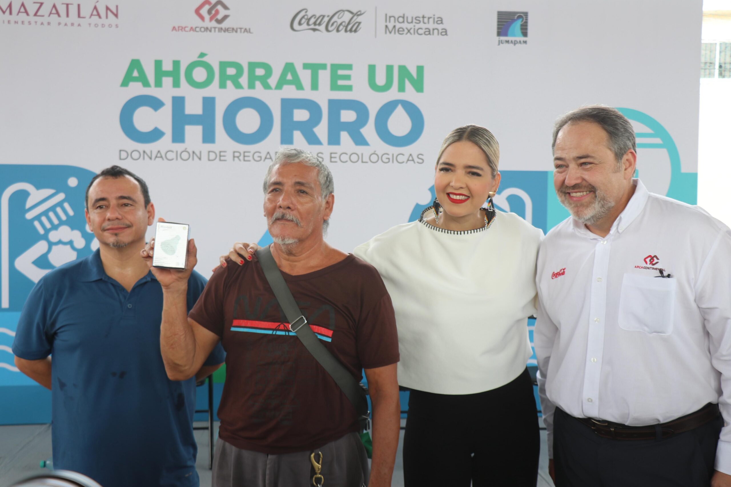 El pasado mes de agosto, el Gobierno de Mazatlán, con el apoyo de la empresa ARCA Continental, a través de la Dirección de Bienestar y Desarrollo Social del Ayuntamiento y de JUMAPAM, puso en marcha el Programa “Ahórrate un chorro”, en beneficio de mil 500 familias mazatlecas que presentan un alto consumo de agua potable, otorgándoles una regadera ahorradora, que ayudará a fomentar el ahorro de agua y prácticas de consumo responsable en el hogar.