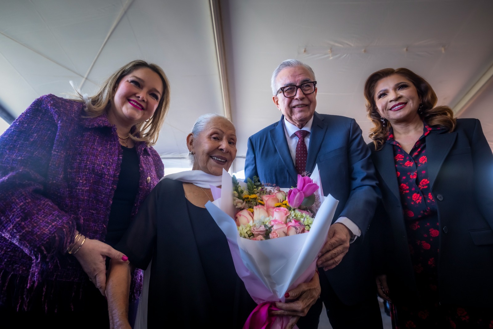 Culiacán, Sinaloa.- Reconociendo a las mujeres sinaloenses que destacan por su trabajo, trayectoria y la entrega a las mejores obras sociales, el Gobernador Rubén Rocha Moya, acompañado de la Diputada Yeraldine Bonilla y la Secretaria de Educación Pública estatal Gloria Himelda Félix entregaron el Premio al Estatal al Mérito Social “Agustina Ramírez”, a Martha Salazar López, por su destacada trayectoria en las artes escénicas.