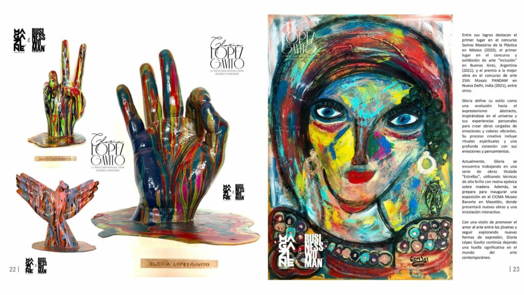 También muestra los logros de la chiapaneca de corazón y alma mazatleca, como el primer lugar en el concurso Somos maestros de la Plástica en México (2020); el primer lugar en el concurso y exhibición de arte «Inclusión» en Buenos Aires, Argentina (2021), y el premio a la mejor obra en el concurso de arte Mosaic PANDAM en Nueva Delhi, India. (2021)