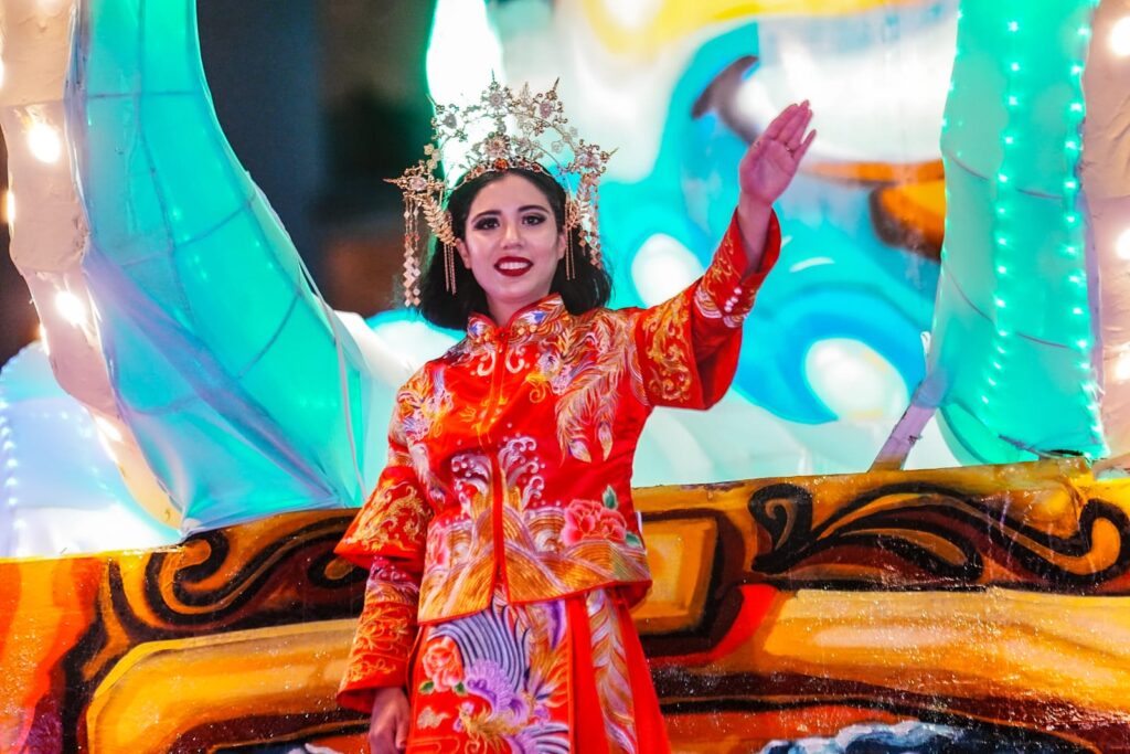El segmento también estuvo conformado por la Reina Saliente, Siu Ling Coteo Chió y la  ella Jazmín Malcampo, Reina de Plata de los Juegos Florales saludó feliz desde su carroza Aguas del Oriente.