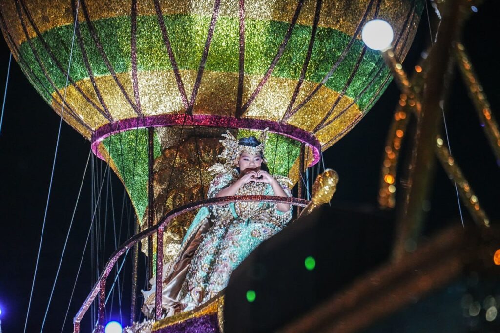 La carroza de la Reina de los Juegos Florales, SGM Desiré I, acompañada por sus princesas Leslie, Sandra y Melisa, fue diseñada y construida por Ocean Rodríguez, medía más de 17 metros de altura y presentaba caballitos de mar y grandes máscaras de carnaval en un diseño colorido y brillante.