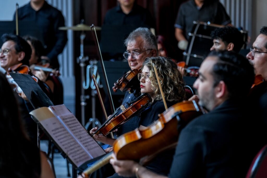 La Camerata Mazatlán ofreció su interpretación en el Pórtico del Teatro Ángela Peralta ante el asombro de los transeúntes e invitados. Esta agrupación es referente en la escena musical del puerto, y su participación simboliza la excelencia artística que el ISIC ha promovido con constancia y visión.