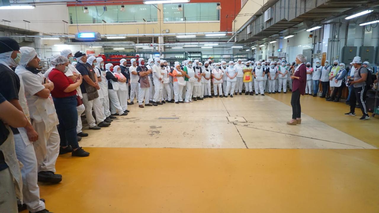 Este jueves más de 250 trabajadores del área de producción de la pastelería hicieron un alto en sus labores para escuchar el mensaje de la candidata del pueblo quien esbozó sus propuestas de campaña y dijo sentirse orgullosa de ser la candidata de Morena y representar el mejor plan de gobierno para Mazatlán.