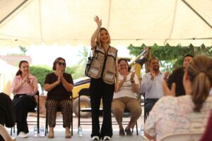 «Venimos a traerles muy buenas noticias, muy bien acompañada vengo por el ‘Equipo del Bienestar’. Venimos aquí, a esta bonita colonia, ya por tercera ocasión. Primero quiero que le brinden un fuerte aplauso a su representante de los vecinos, Rocío Moreno, muy bonitas palabras. Básicamente, lo que ella les dijo es que les estamos cumpliendo. Esta fue una promesa de campaña, ‘amor con amor se paga’, y somos un Gobierno que cumple, palabra de mujer, aquí estamos el día de hoy», expresó la Presidenta Municipal ante una gran audiencia.